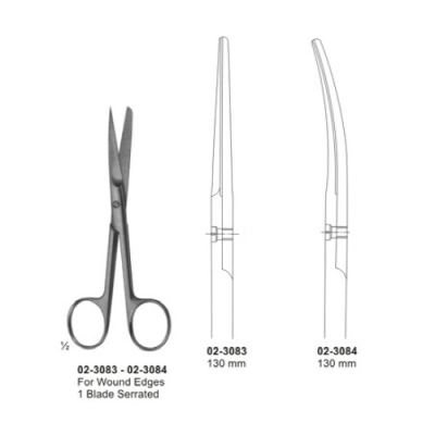 Both models—AE 02 3083 and AE 02 3084—feature finely honed blades that provide smooth and precise cutting of both soft and dense tissues. The blades are carefully aligned to minimize tissue trauma and promote clean, controlled incisions. The ergonomic design of the handles ensures comfort during prolonged use, reducing hand fatigue and improving operational efficiency in surgical environments. The scissors are also designed with a smooth joint mechanism, providing effortless motion and superior tactile feedback to the user.